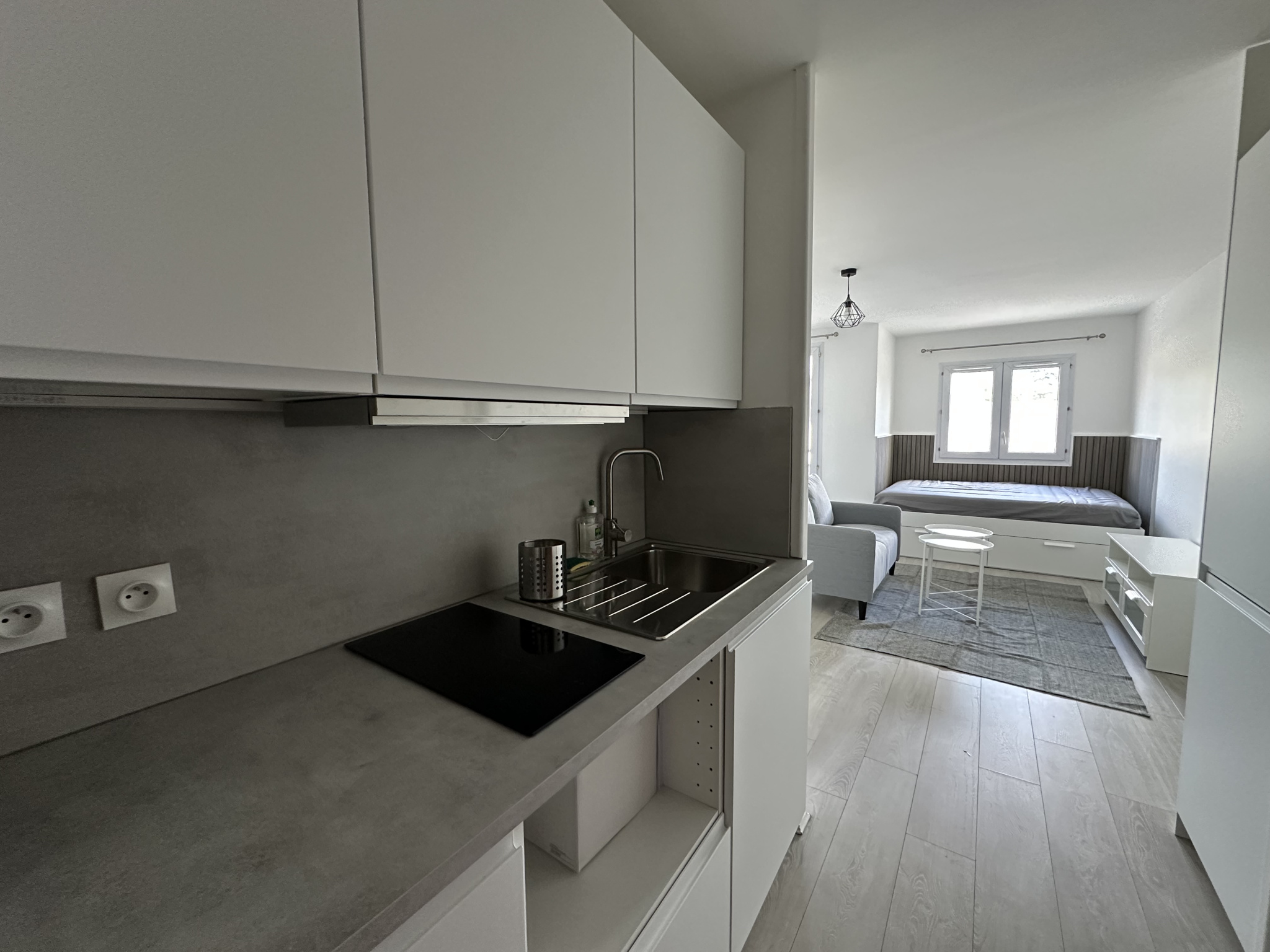 EXCLUSIVITE - Centre village, au sein d'une petite résidence très calme, magnifique studio de 27,10m², meublé et décoré avec goût. Situé au 2ème étage sans ascenseur, il se compose d'une entrée sur cuisine US entièrement équipée sur la très lumineuse pièce de vie avec espace couchage et donnant sur balcon orienté sud/ouest avec vue dégagée sans vis-à-vis, une salle de bains avec wc. 1 cave en sous-sol et un emplacement de parking privé en extérieur complètent ce bien. Honoraires agence (part locataire) : 355,55 euros TTC - dépôt de garantie : 1400 euros. Sophie Guizien, Directrice agence immatriculée au RSAC de Versailles sous le numéro 397 616 244.